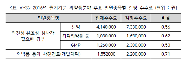 연구팀은 "신약은 심사건당 3900만원 정도의 높은 원가를 보이고 있고, 외국의 사례와 비교할 경우에는 높은 금액은 아닐 수 있다"며 "하지만 처음 도입 시점에서 외부의 반발이 있을 것으로 예상되는 만큼 공익성을 고려해 일정부분 원가 이하의 금액을 수수료로 산정할 수 있다"고 했다.