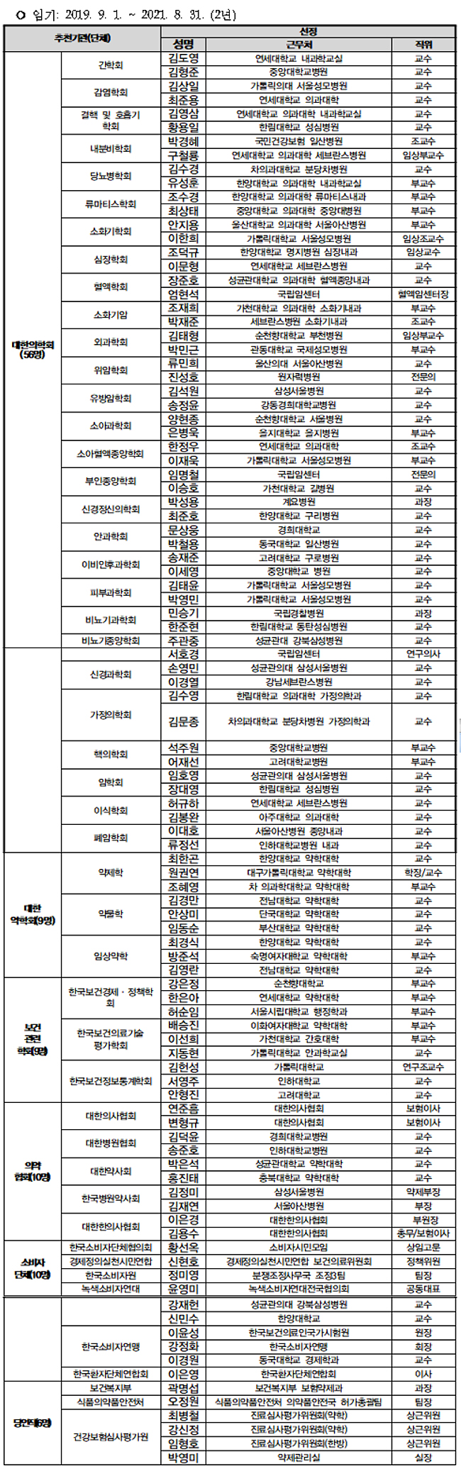 - 심평원, 제7기 위원 위촉...2021년 8월 31일까지 2년 임기