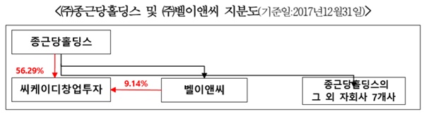 벨이앤씨도 종근당홀딩스 자회사로 편입됐지만 기존 보유하고 있던 CKD창업투자 지분 12만8000주(9.14%)를 계속 가지고 있다가 유예 기간 만료일인 2017년 12월 31일을 넘겼다.