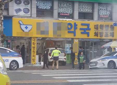 피해를 입은 B약국장은 "직원들이 정리와 청소를 하고 있는 상황이었는데, 다행히도 차가 비집고 들어온 자리엔 없어서 다치지는 않았다"면서 "출입문이 부서지고 일부 진열대가 망가지는 피해를 입었다"고 말했다.