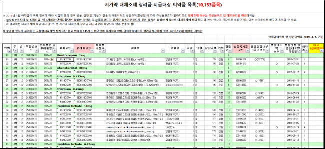 대체조제시 장려금 받는 저가의약품 1만153품목