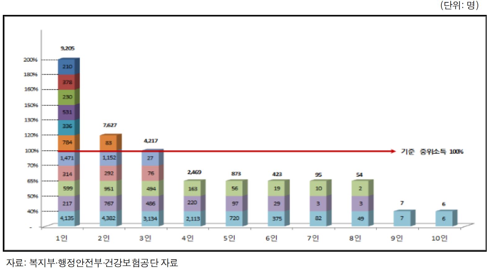 반면, 4인 이상 가구 중 최소 5596명은 소득이 기준 이하에 해당하지만, 의료비 지원을 받지 못하는 것으로 나타났다.