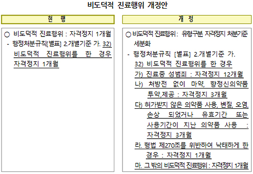 비도덕적 진료행위 유형 세분화·행정처분 기준 정비