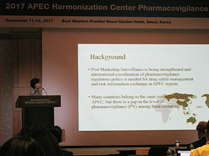 12일 오후 식약처 '2017 APEC 규제조화센터 약물감시 워크숍'에서 'APEC 지역 내 약물감시 분야 규제조화 연구 추진현황' 패널토의 시간에는 성대약대 이의경 교수가 진행, 발표한 연구 발제와 PV 정책에 대한 도전과제 해법에 대한 논의 등이 활발하게 이뤄졌다.